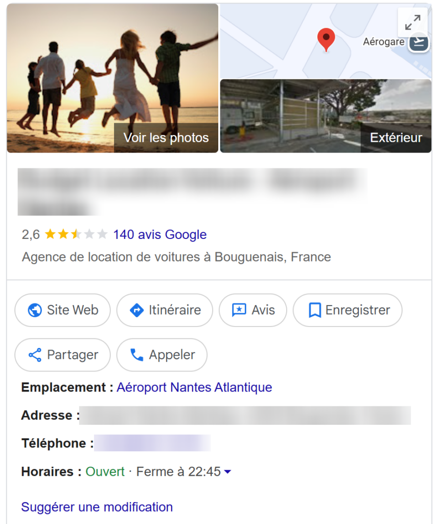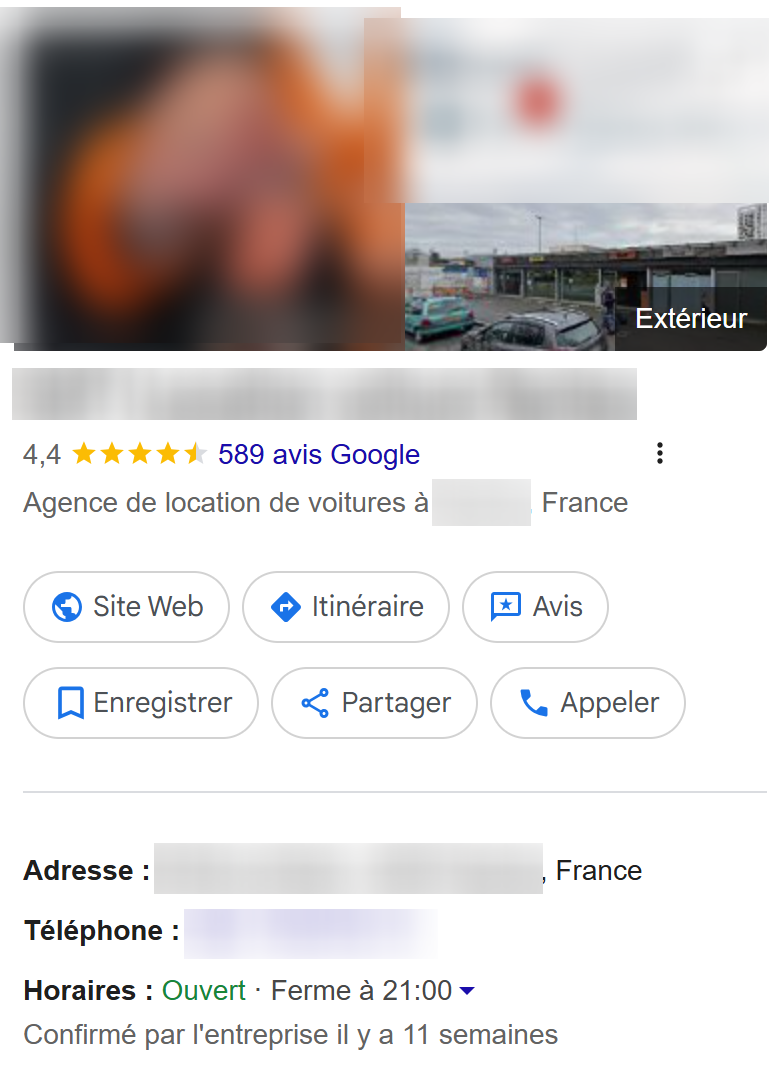 Peu d’avis, score global négatif, photos libres de droit et IA, pas de description, horaires non mis à jour, zéro gestion, mots-clés ajoutés dans le titre…